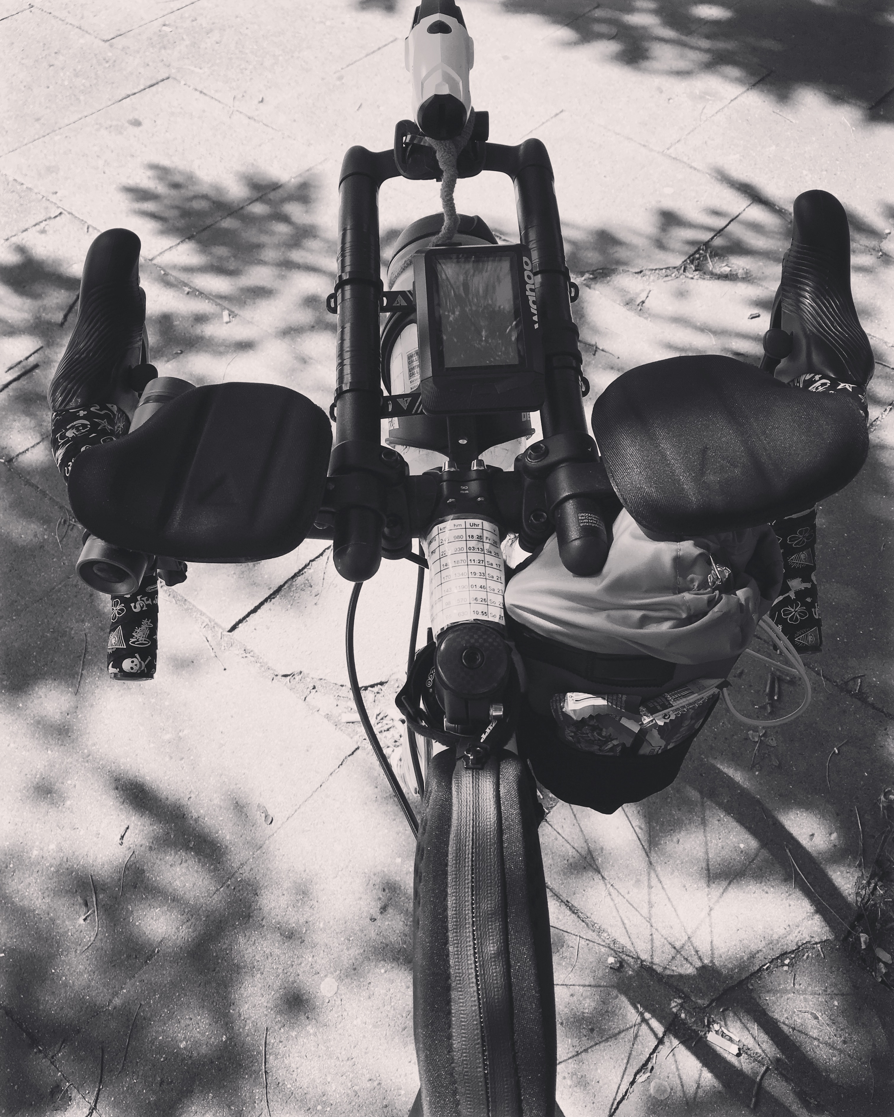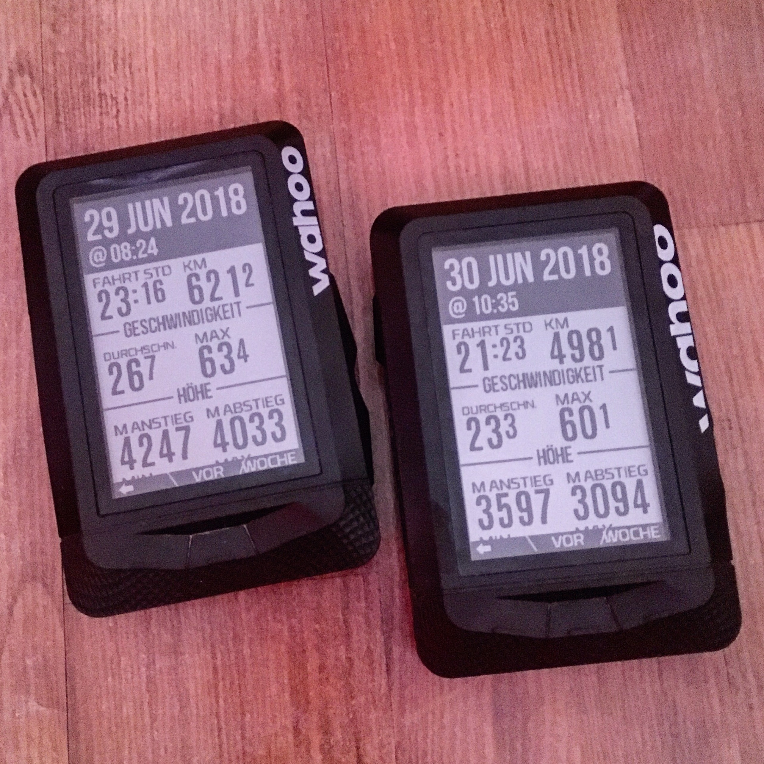 Auch am zweiten Tag wurden wir Fahrer mit strahlendem Sonnenschein beglückt. Bedeutete jedoch auch permanent anhalten zu müssen, um die drei am Rad befestigten Flaschen regelmäßig aufzufüllen. Zum Glück hatte ich jede Menge Salztabletten eingesteckt, sodass ich diese stündlich einnehmen konnte, um den Salzverlust auszugleichen. Gegen Mittag stellte sich bei mir erstmals der Motivationsverlust ein. Die durchfrorene erste Nacht machte mir immer noch zu schaffen. Im Nachhinein glaube ich aber, dass es eigentlich keine körperliche Erschöpfung, sondern Kopfsache war. Problematisch war für mich vor allem die Nähe zu meiner Geburtsstadt Fulda, welche teilweise schon auf den Straßenschildern ausgeschildert war. Somit war permanent eine zu diesem Zeitpunkt extrem verlockende Exit-Option vorhanden. Entgegen meiner normalen Gewohnheit mich auf das Ziel zu konzentrieren, beschäftigte ich mich zunehmend mit der Option das Rennen hier abzubrechen und spielte gedanklich die verschiedenen Möglichkeiten durch. Meine körperliche Erschöpfung konnte ich so natürlich nicht in den Griff bekommen. Also zog ich die Reißleine. Eine Pause zum Fokussieren musste her. Da die Sonne ohnehin erbarmungslos knallte, legte ich mich für einen 20minütigen Powernap in den Schatten, um danach meine Gedanken zu sortieren. Zwar konnte ich nicht wirklich schlafen, aber das Abschalten tat extrem gut. Anschließend schaute ich das erste Mal auf die Tracking App, um meine Position einschätzen und eine Entscheidung treffen zu können. Und siehe da…trotz der gefühlt langen Pausen stand ich sehr gut da. Der erste non-supported Fahrer war wie erwartet schon weit vorne, aber ich war an zweiter Stelle und das mit einem komfortablen Abstand von fast 100km. Und auch noch zwei Fahrer mit Crew waren hinter mir. Von da an war klar – aus so einer Position heraus kann man kein Rennen aufgeben nur weil der Kopf nicht mitspielt. Und siehe da, nach dieser Pause fand ich langsam zur alten Stärke zurück. Von nun an war die Heimatnähe ein echter Motivator, da ich die Berge rund um Kitzingen gut kenne. Erstaunlich was der Kopf alles ausmacht. Selbst eine Panne am Hinterrad konnte da die Stimmung nicht merklich trüben.