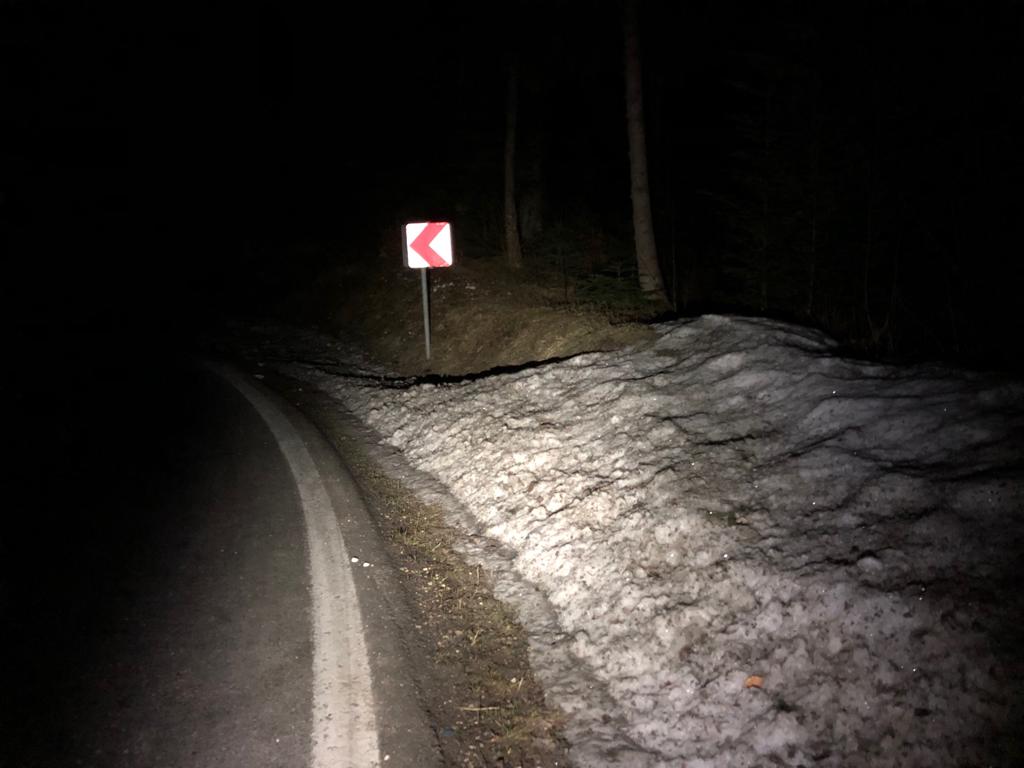 In Pforzheim haben wir dann die erste längere Pause gemacht. Lecker Kuchen und Espresso am Flussufer helfen doch sehr die Speicher wieder aufzufüllen. Auch mal angenehm eine Langstrecke nicht im Rennmodus zu fahren, sondern einfach zwischendurch mal die Sonne genießen und die Seele baumeln lassen. Weiter geht es Richtung Schwäbische Alb. Die Berge werden steiler und ich muss feststellen, dass ich meine Kettenblatt-Wahl für mein nächstes Rennen an den Steilküsten von Korsika doch noch mal überdenken sollte. Die paar Kilo extra Gepäck, die man bei solch einer langen Tour ohne Support dabei hat, machen sich eben doch spürbar bemerkbar. Neben den Anstiegen setzt uns insbesondere die Temperatur zu. Die Kehrseite des sonnigen Tages zeigt sich in einem sternenklaren Nachthimmel, der mit Temperaturen zum Teil unter dem Gefrierpunkt aufwartet. So erwarten uns auf knapp 900 m Höhe dann sogar noch die letzten Schneefelder am Straßenrand. Nichtsdestotrotz genieße ich die Ruhe und Einsamkeit der nächtlichen Fahrt.