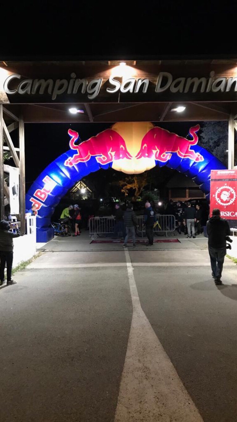 Gegen 10 Uhr erreiche ich Ajaccio. Einige Fahrer, die ich bei meinem Platten verloren habe, sehe ich nun doch wieder. Das motiviert mich meine Pause etwas kürzer zu halten als angedacht. Auch hier gibts eine warme Mahlzeit vom Orga-Team, welche ich jedoch im weiteren Verlauf bereue. Viel zu salzig. So viel Wasser konnte ich auf den nächsten Kilometern gar nicht runterspülen. Ansonsten lief die Ernährung in der Nacht ziemlich gut. Hier griff ich ausschließlich auf Flüssignahrung zurück, da diese im Dunkeln auch wesentlich einfacher zu sich zu nehmen ist. Dazu etwas Iso mit Koffein, um der Müdigkeit vorzubeugen. Danke Jochen für den Tipp während unserer ersten Riding4Europe Tour. Nichtsdestotrotz soll es eine harte Nacht werden. Die Müdigkeit kann ich mit guter Musik zwar in den Griff kriegen, aber es wird dazu noch ziemlich kalt. Stellenweise sinkt das Thermometer bis auf 2 Grad. Zu allem Übel fängt dann noch meine linke Partella Sehne an zu schmerzen und ich muss meinen Fahrstil anpassen, um einer Überbelastung vorzubeugen. Entsprechend komme ich nur sehr schleppend voran. Es geht in einem konstanten Auf und Ab die Küste entlang. Die Meeresbrandung als treuer Begleiter. Leider kann ich die schöne Strecke im Dunkeln nicht wirklich genießen. Gegen vier Uhr morgens dann die erste Überraschung. Plötzlich steht am Straßenrand wieder Xavier, der in Ajaccio ca. 30 Minuten vor mir aufgebrochen ist. Ich bin also nicht der einzige, dem die Nacht zu schaffen macht. Im weiteren kann ich noch Jason einholen, der sich in einem nicht abgeschlossenen Camper ein paar Minuten aufwärmt. In der Morgendämmerung schließe ich dann noch zu Christof auf, mit dem ich bis Monticello weiterfahre und meine französisch Kenntnisse aufpoliere. Kurz vor Monticello können wir auch noch Deniz aus Russland überholen. Dem hat die Kälte übel zugesetzt, da er auf Korsika nur schönes Wetter erwartet und daher keine lange Radhose oder Beinlinge dabei hatte. Keine gute Idee. Da helfen auch mit Panzertape um die Beine gewickelte Müllbeutel nicht viel.