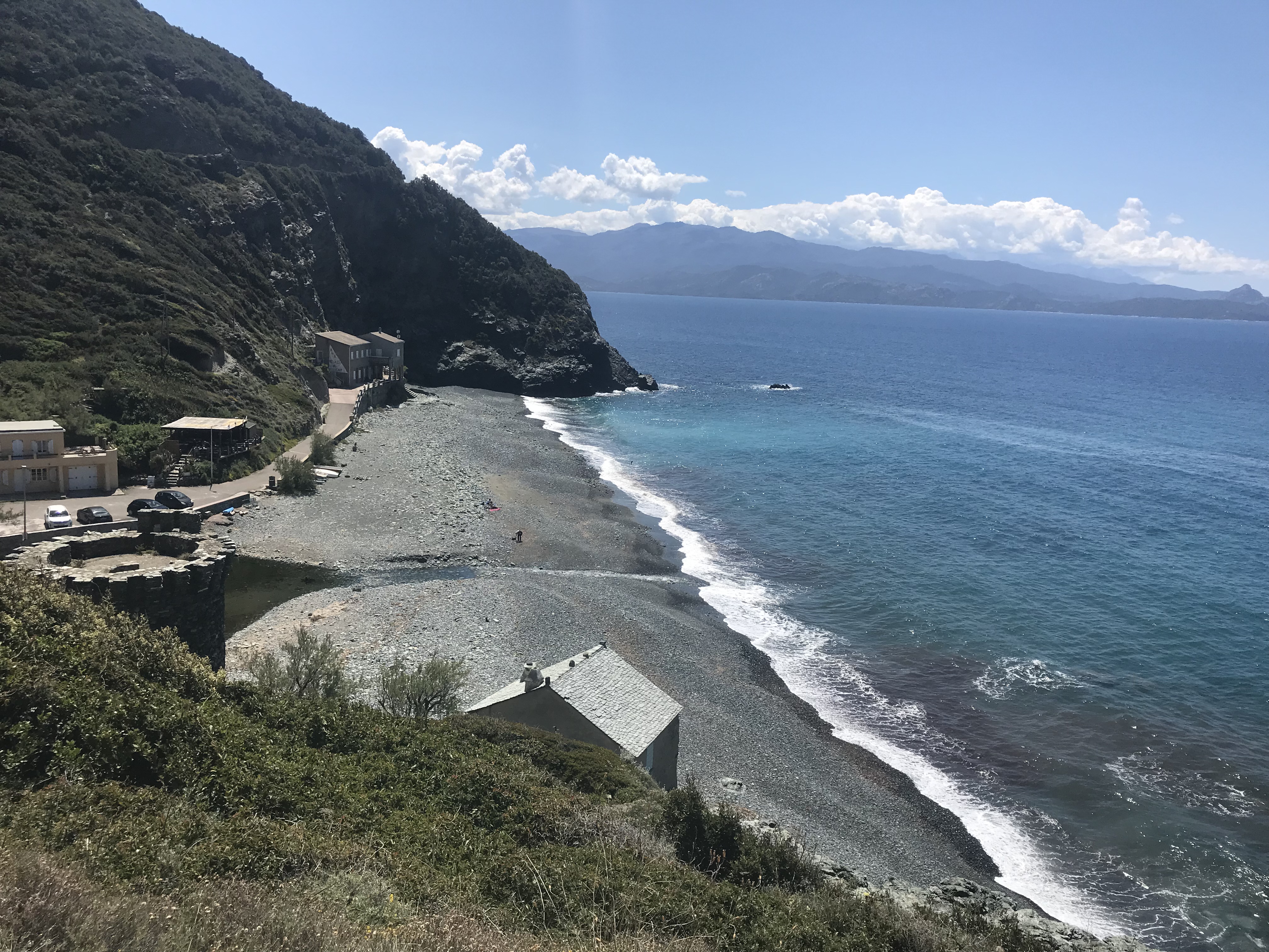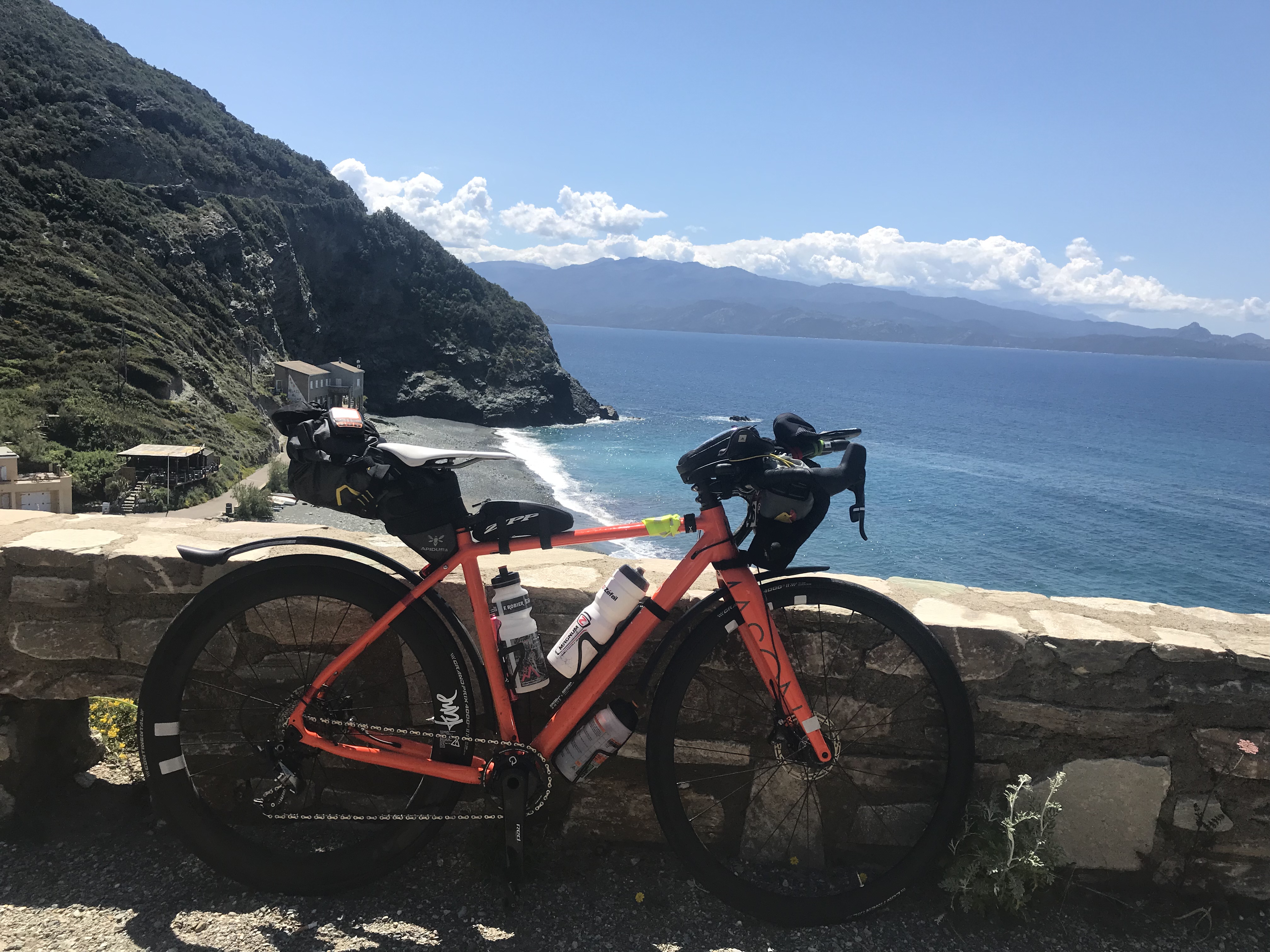 Endlich steht der letzte Abschnitt an. Noch 180km mit „nur“ noch 2.600hm. Alles bei strahlendem Sonnenschein und endlich warmen Temperaturen. Frisch gestärkt und auch wieder top motiviert breche ich von CP 2 Richtung Ziel auf. Die leicht wellige Strecke an der Küste ist genau mein Ding und ich kann endlich auch mal längere Strecken auf den Aerobars fahren und somit andere Muskelgruppen belasten. Hände und Hintern danken es. So geht es also zügig Richtung Cap Corse – der nördlichen Spitze Korsikas. Hier ist die Landschaft wieder atemberaubend. Strahlend blaues Meer, steile Klippen und der bekannte schwarze Strand dieser Region.